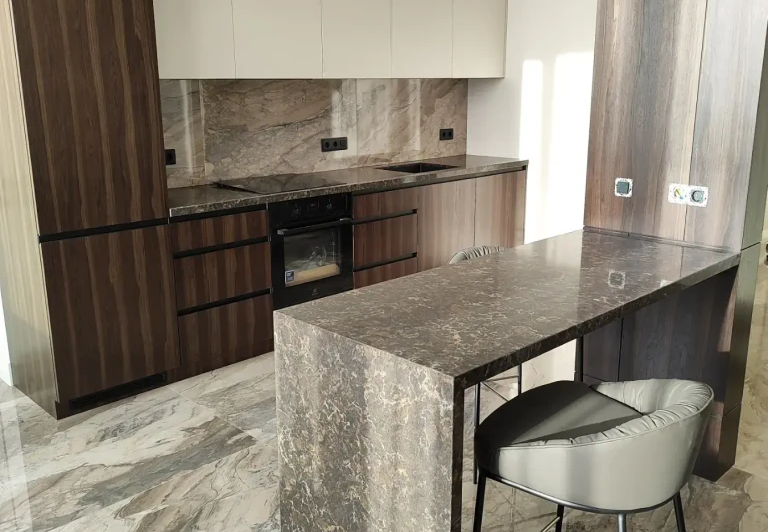 В кухонных пространствах натуральные плиты из мрамора, гранита или кварцита часто используют для изготовления столешниц и поверхностей рабочих зон. Такие решения подчеркивают архитектурную отделку помещения и гарантируют устойчивость к царапинам, температурам и влаге. Натуральные текстуры создают эффект роскоши, а правильный выбор камня делает кухню не только красивой, но и функциональной.